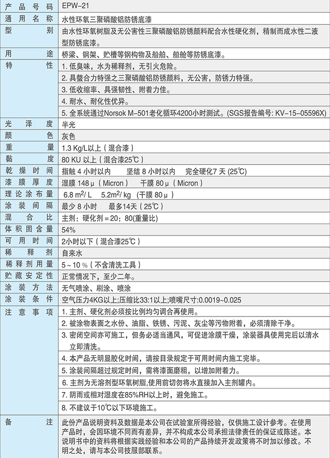 EPW-21水性環氧三聚磷酸鋁防銹底漆